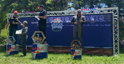 on the podium in the third spot of the 'Red Bull Mountain Scramble!'